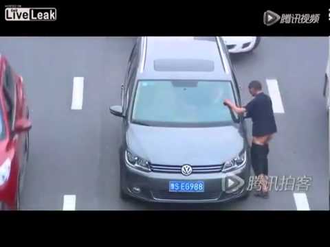Trung Quốc: ngang nhiên vạch quần chắn xe xin tiền Quả là vl thằng này, đúng là cái kiểu xin tiền có một không hai